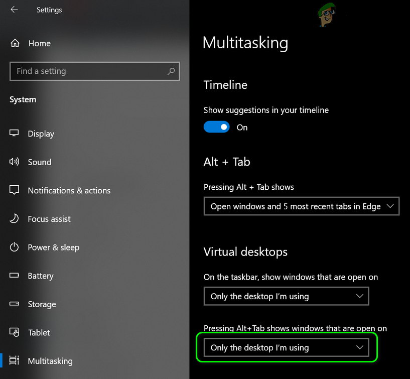 Setting Pressing Alt + Tab Shows Windows That Are on to Only the Desktop I’m Using