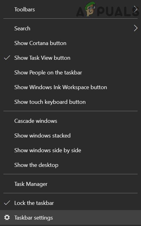 - Right-click on the Taskbar of your system and choose Taskbar Settings.