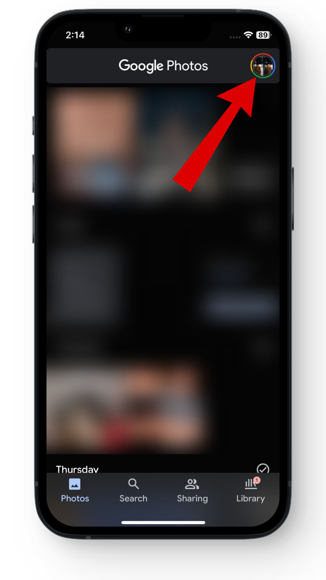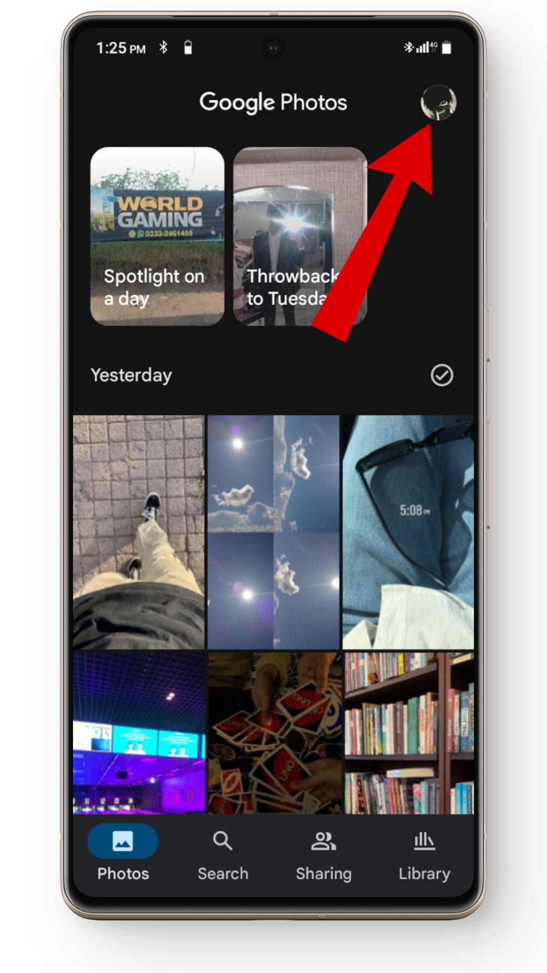 Open up your Google Photos app - Tap on your profile icon located in the top right corner.