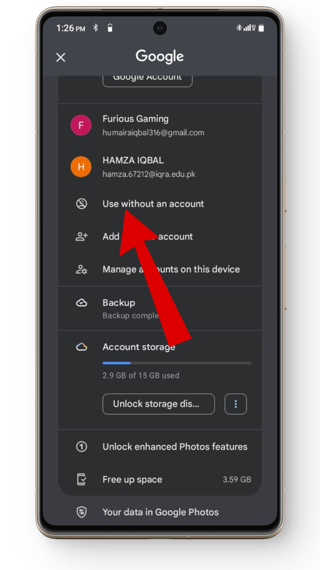 Tap on the downward arrow - Finally, tap on the Use without an account option and you are good to go.