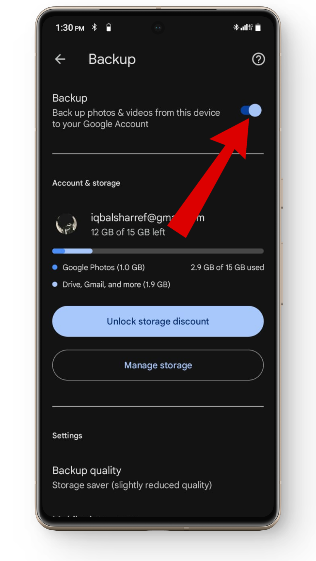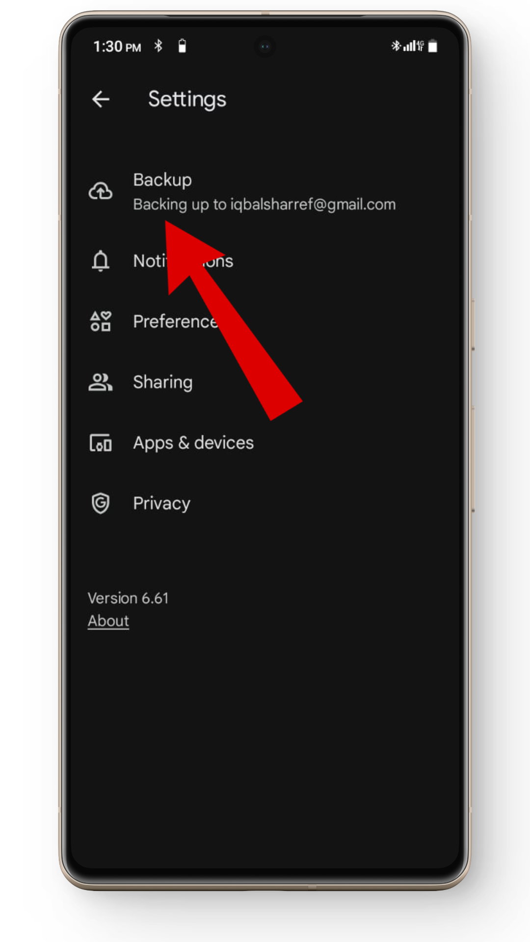 Head to the backup option - Here, toggle off the slider next to Backup & sync.