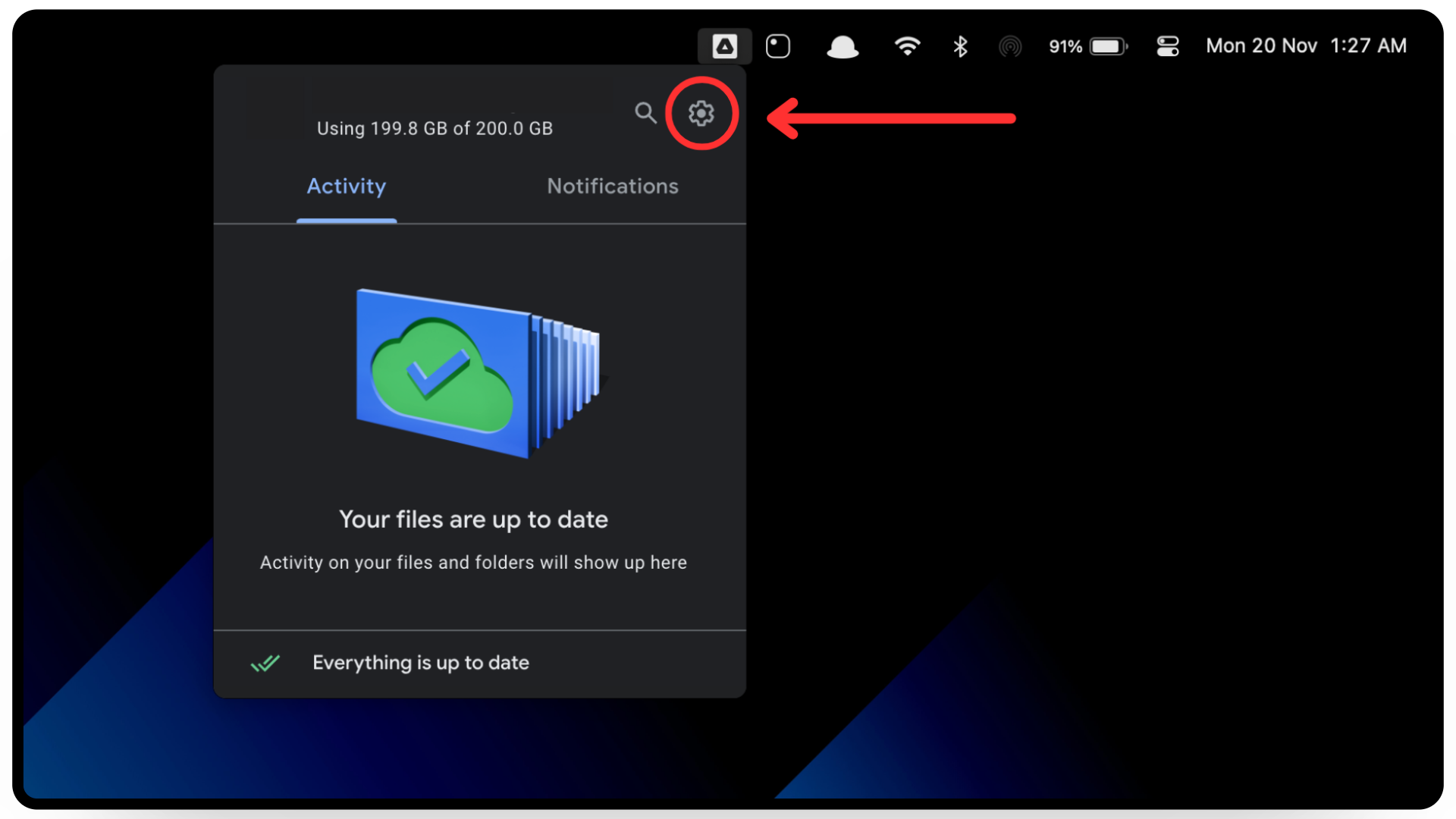 Click on the drive icon - Next, head to the settings menu from the gear icon.