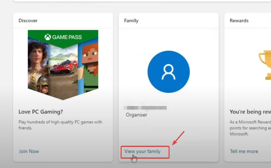 - Click the View your family link under the “Family” section.