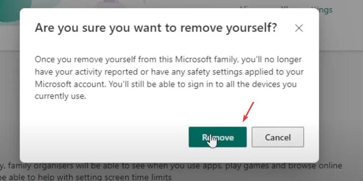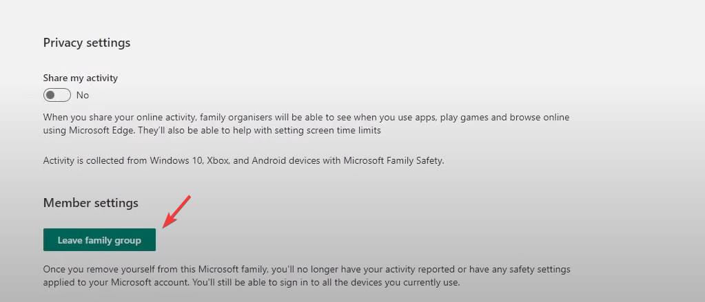 - Scroll down and click the Remove Family Group button.