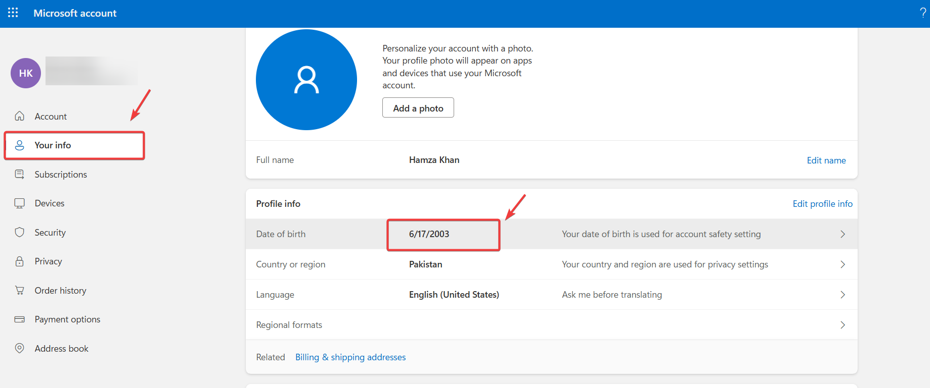 - Navigate to Your Info in the left-hand menu. Verify that your birthdate is set to an age over 18. If it’s incorrect or underage, update it to meet the requirement.