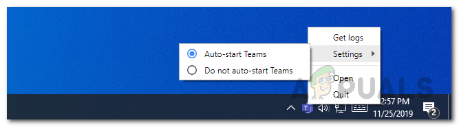 The first and easiest way that you can actually stop Microsoft Teams from launching at startup is via the Microsoft Teams icon on the system tray. When the application launches, an icon of the application appears on the taskbar. This can be seen if you have the application running right now. Thus, you can go through the settings option that pops up when you right-click on the icon and disable the option that starts it on boot up. Follow the step-by-step instructions down below to do this: