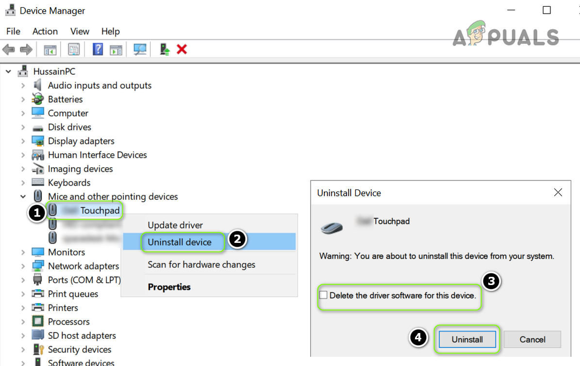 Uninstall the Touchpad Device and Delete its Driver - Now click on Uninstall and let the touchpad driver installation complete.