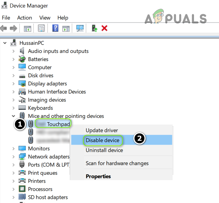 Disable Touchpad in the Device Manager