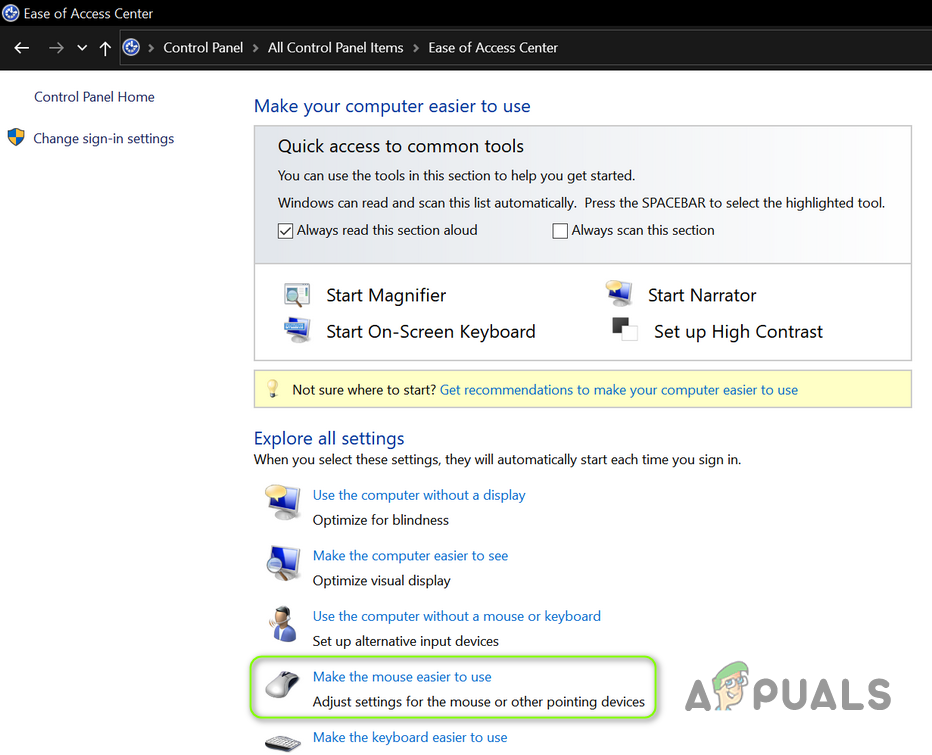 Open Control Panel - Now open Ease of Access and then Ease of Access Center.