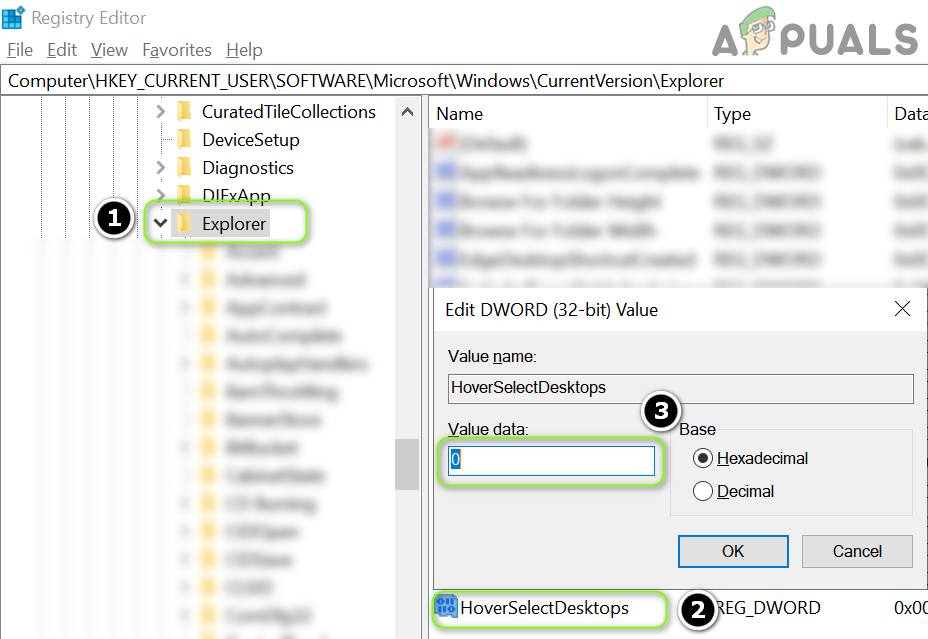 Create a New Dword (32-bit) Value for the Explorer Key - Then, in the right pane, rename the new value as HoverSelectDesktops and double-click the file to open it.