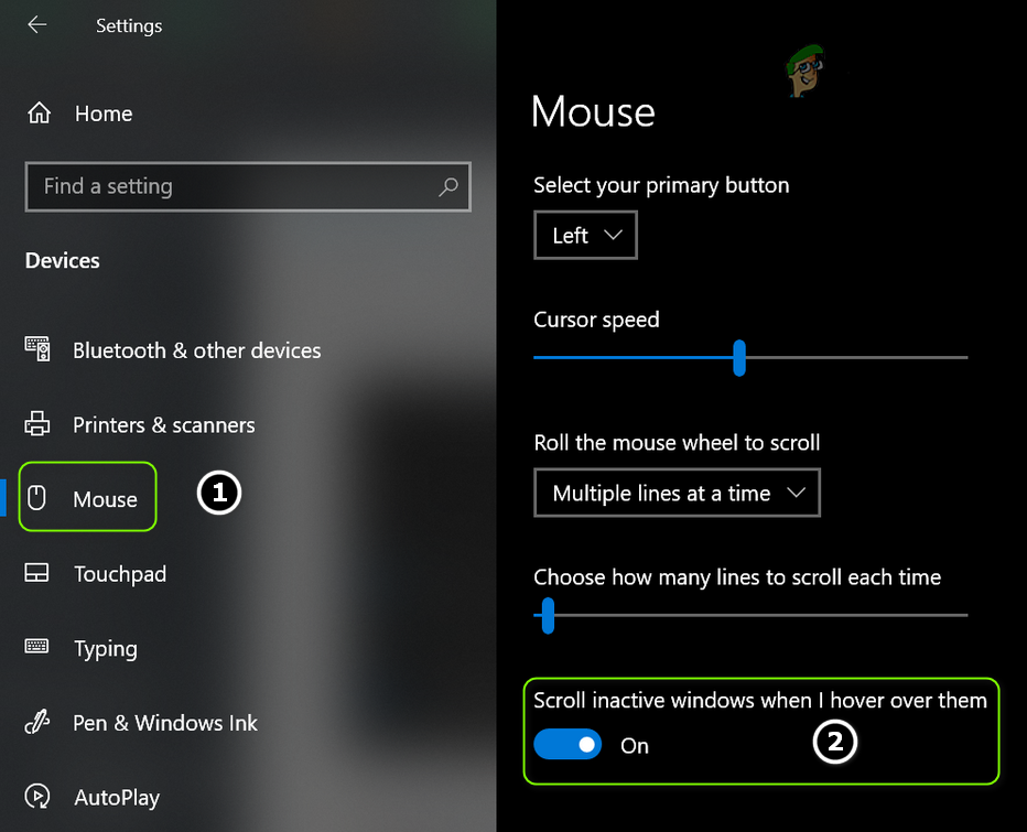 Open Devices in Windows Settings - Then, in the right pane, disable the option of Scroll Inactive Windows When I Hover Over Them and reboot your PC.