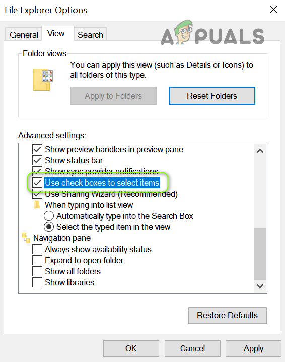 If the issue is resolved but you want to use the single-click option, then navigate to the View tab of the File Explorer Options and enable Use Check Boxes to Select Items.