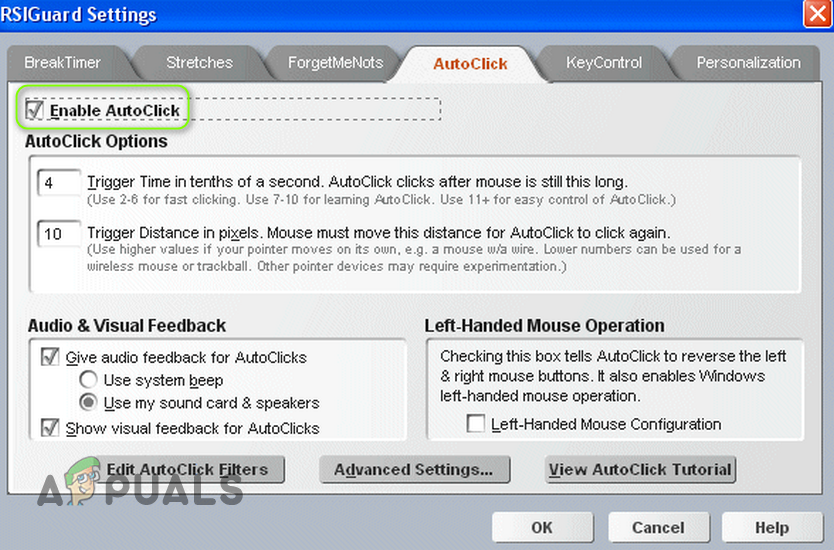 If you do not want to uninstall the problematic application, then check if you can disable the mouse hovering feature in the application’s settings. For example, launch the RSIGuard application and uncheck the AutoClick option to sort out the issue. If the setting is not working or applying, then make sure to update the utility that is causing the issue.