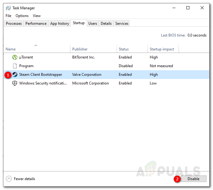 Disabling Steam during Startup - Alternatively, click to highlight the Steam Client Bootstrapper entry and press the Disable button located at the bottom right.