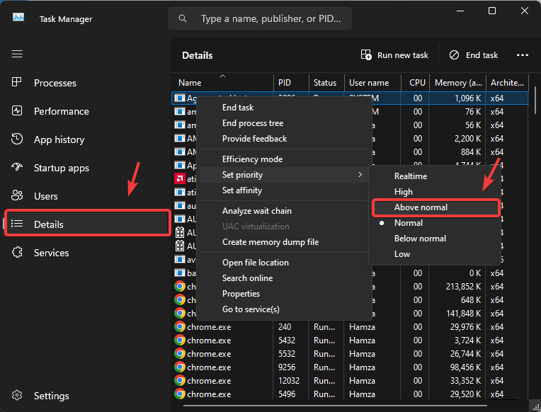 - Hover over Set Priority and choose Above Normal. If you have a high-end PC, you can choose High as well.