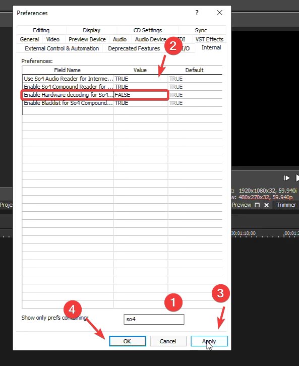 - Change the value of Enable Hardware Decoding for so4 Compound Reader to FALSE.