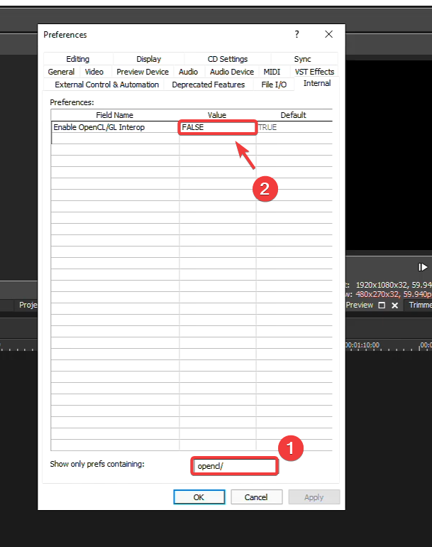 - Search for opencl and change its value to FALSE.