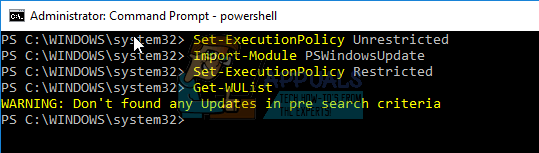 - Uninstall the unwanted update (if installed; use steps 1 – 5 in method 3), then run the following command to get a list of all available windows updates: Get-WUList