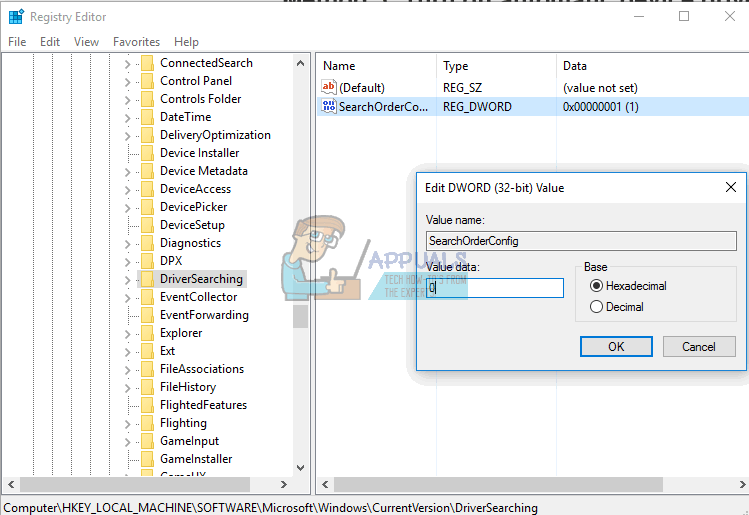 HKEY_LOCAL_MACHINE\SOFTWARE\Microsoft\Windows\CurrentVersion\DriverSearching