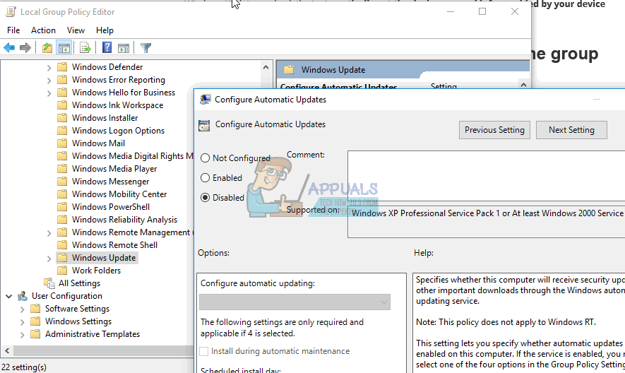 - On the right-hand pane, locate the setting called “Configure Automatic Updates” and double-click it