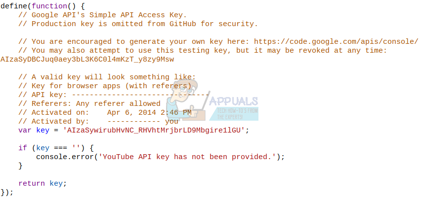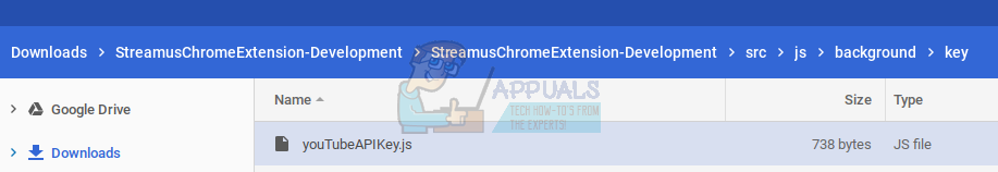 3. Inside the ‘key’ folder, you will find the file ‘youTubeAPIKey.js’. Open it with a text editor.