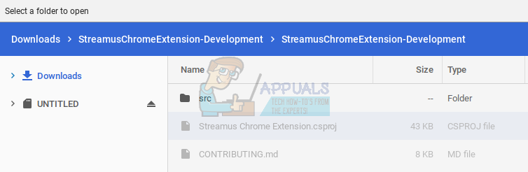 4. What you have to do is to navigate to the location where you extracted the Streamus application, and select the ‘src’ folder. Select the ‘src’ folder and click on ‘Open’ on the bottom right corner of the screen.