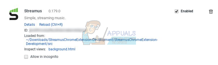 5. You will notice that Streamus will have been added under Extensions.
