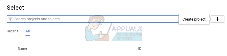 3. A pop-up window will appear. Click on the + button (‘Create Project’) on the top right corner of the window.