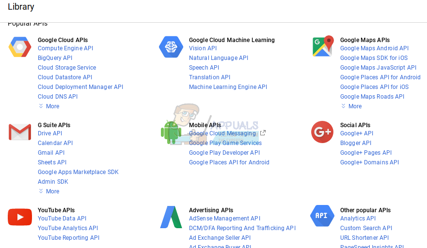 6. In the library, under Youtube APIs, click on Youtube Data API.