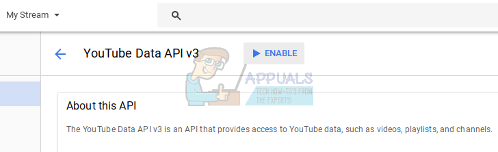 7. Enable the API by clicking on ‘Enable’.