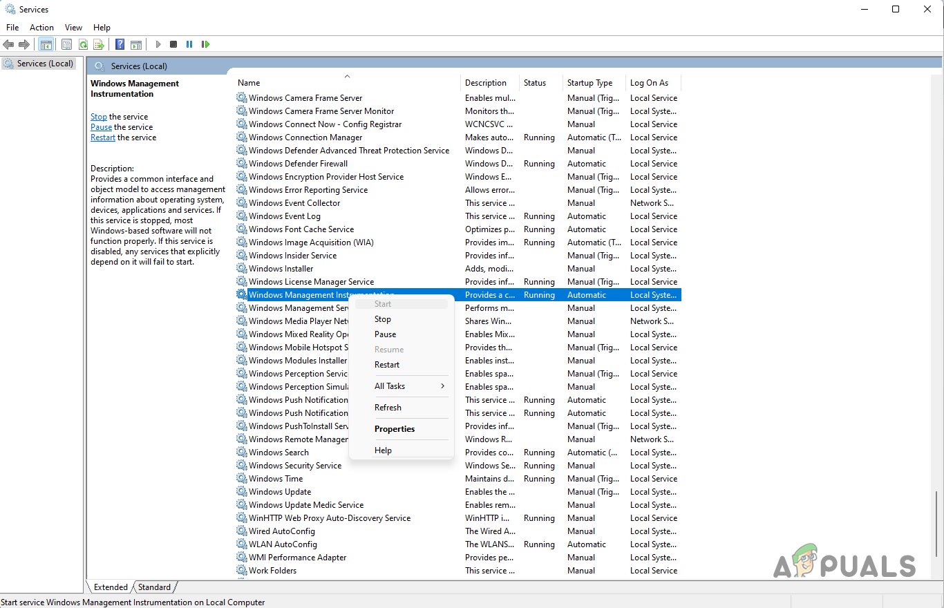 Starting Windows Management Instrumentation Service - Once the service is running, try to launch the game again to see if the issue has been resolved.