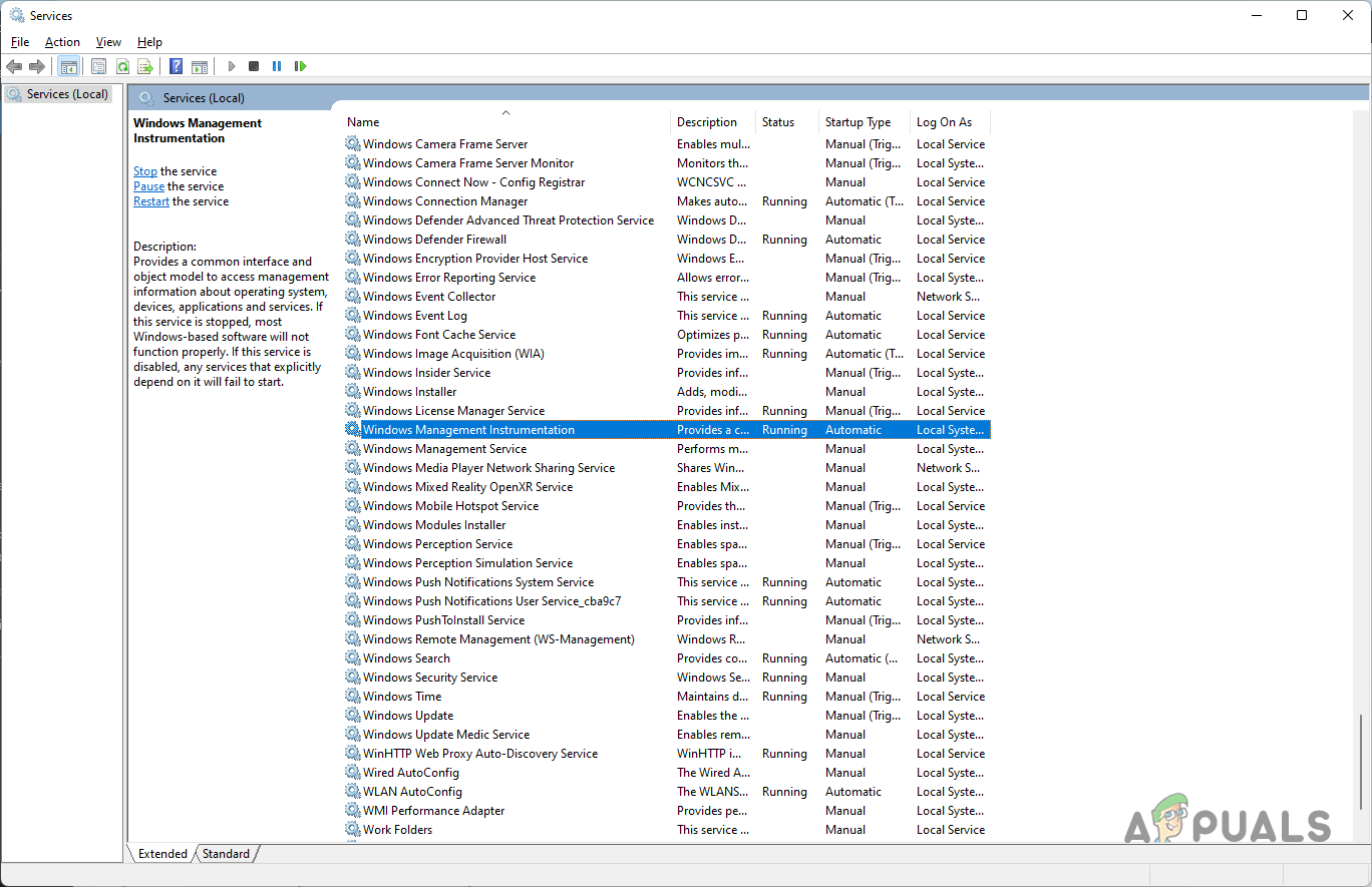 As we have mentioned already, Windows Management Instrumentation is a service that enables other programs on your computer to access the operating system management information. If this service is not stopped when a program needs it, the app won’t be able to start. In order to fix this, you will simply have to start the service on your system. To do that, follow the instructions that are given down below: