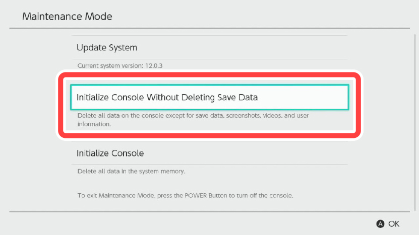 Tap on Initialize console Without Deleting Saved Data - Tap on “Next” and confirm the initialization by tapping the orange “Initialize Console Without Deleting Save Data” button. Your console will be rebooted and act as a new one. You will need to set up language and internet and agree to user agreements.