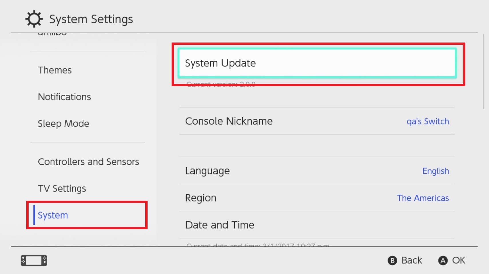 - Go to “System” and tap on “System Update.” The system will automatically check and install any recent firmware builds on your console.