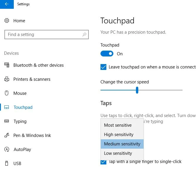 - You should see the sensitivity dropdown of your touchpad in the middle of the screen.