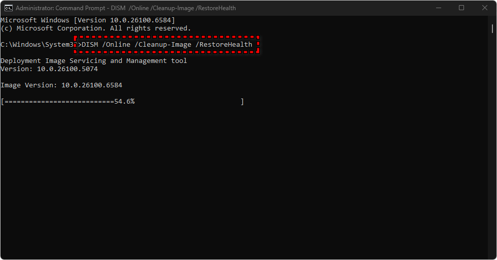 - If the problem persists, reopen Command Prompt as administrator and run the following DISM commands one by one: