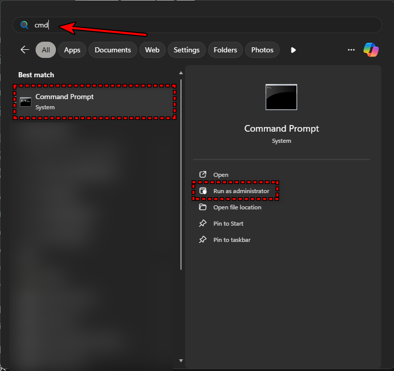 - Press Windows + S and type cmd in the search bar.