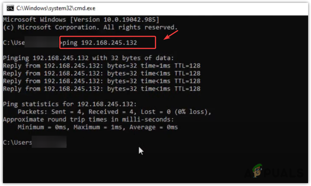 - In the Command Prompt on the DC, ping the affected PC by typing: