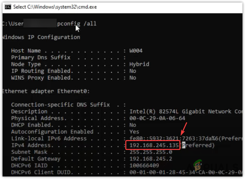- Note the IPv4 address and then proceed with the instructions on the affected device.