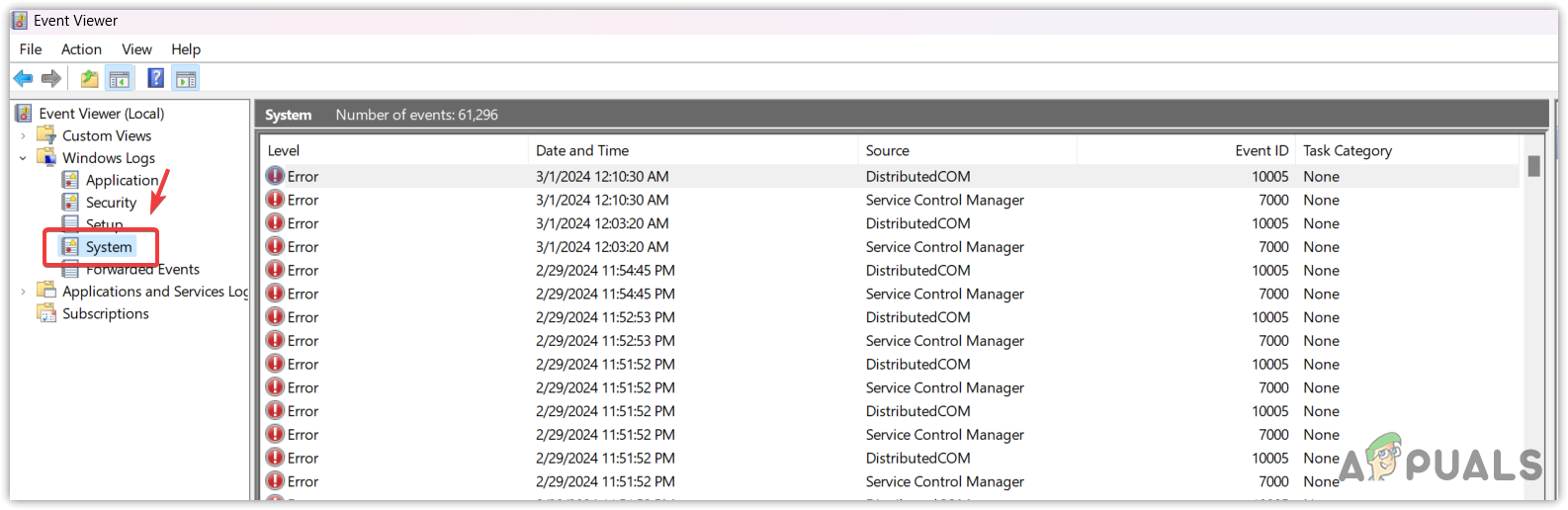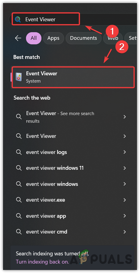 - Press the Win key, type Event Viewer, and press Enter to open it.