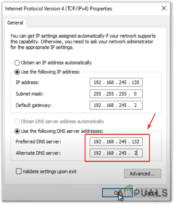 - In the Preferred DNS Server field, enter the IPv4 address you recorded earlier.