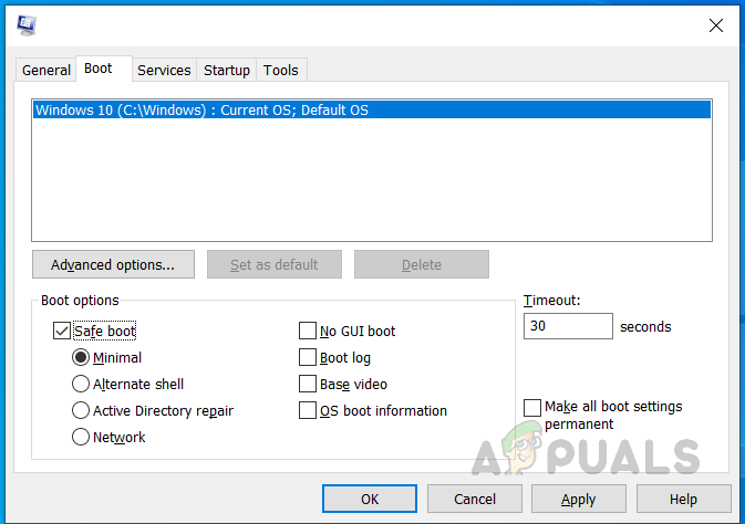 Type msconfig and Click OK - Select the Boot tab and under Boot Options, check the Safe Boot option. Now click Apply and then OK and restart the system.
