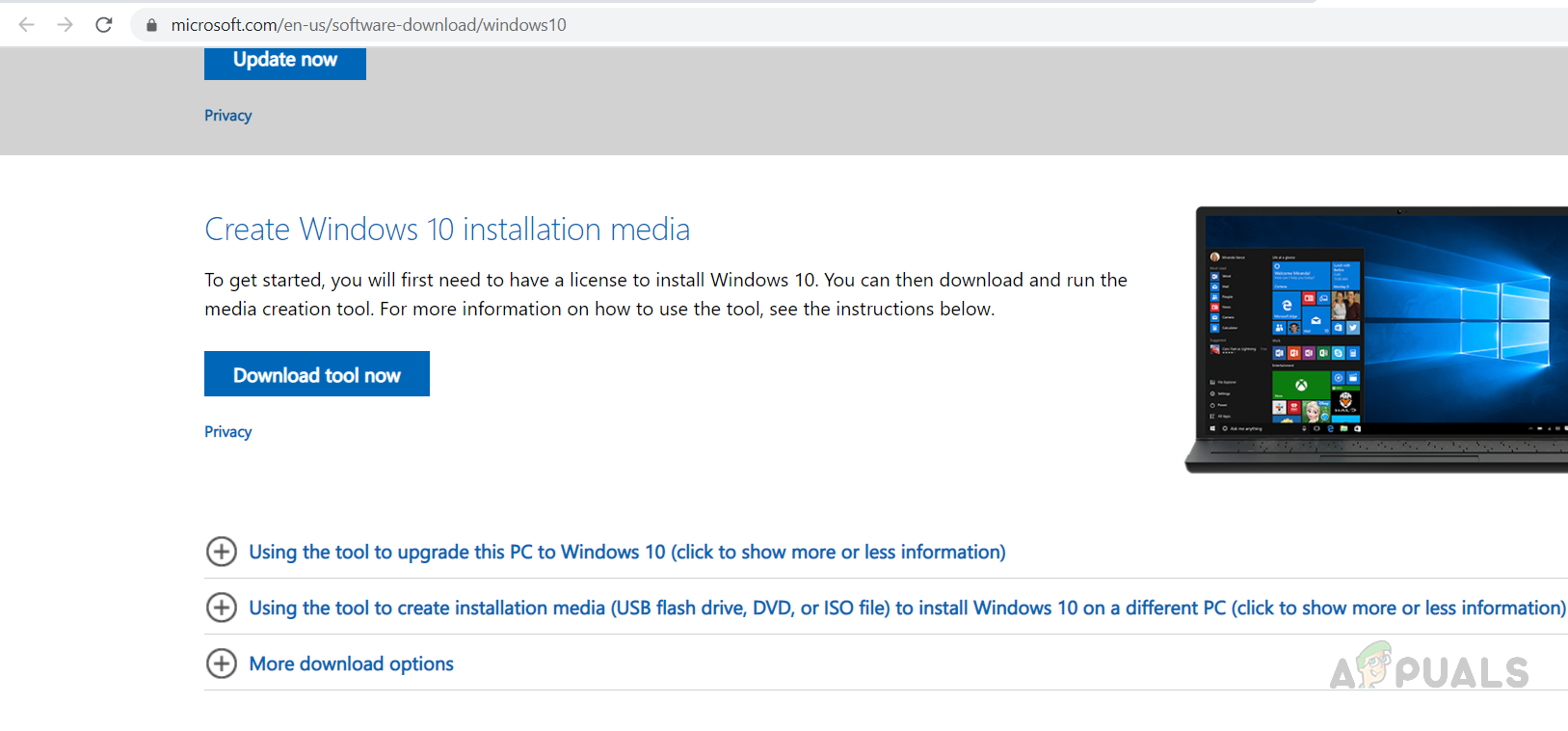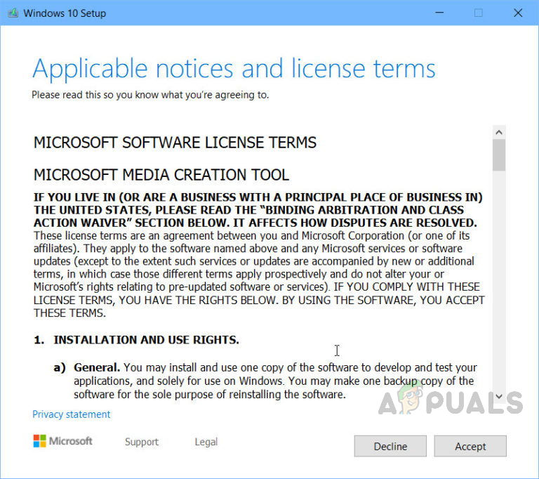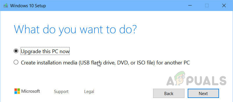 In this method, we will use the Media Creation Tool to upgrade the Windows to the latest version. Media Creation Tool is free software provided by Microsoft which is used to create a Windows Installation Media or upgrade Windows directly to the latest version. We can use the upgrading option to copy a fresh copy of Windows latest version and this will replace the corrupt or missing system files. This will take some time as the Tool will first download the Windows files and then perform an Upgrade.