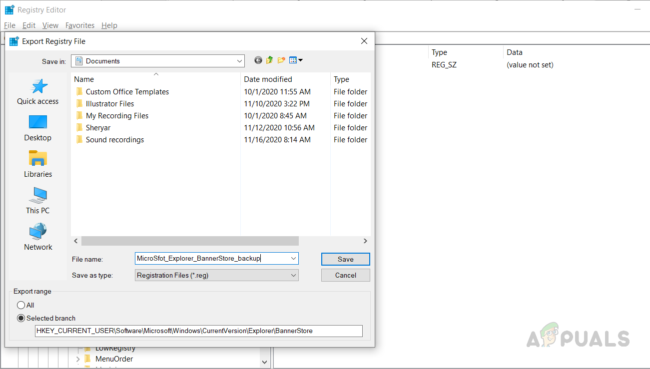 Locate the Folder Named BannerStore - First create a backup of the Registry, Click File, and the Click Export