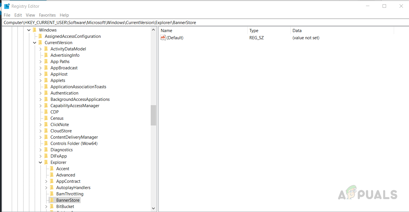 The Registry Editor is a tool in Windows that is used to change the configuration settings for the System Programs and Drivers. In this method, we will remove the key named BannerStore which is found in the HKEY_LOCAL_MACHINE folder which contains the configuration data that is shared by all users on Windows. Removing this key has solved the problem for many users. Please see the below steps.