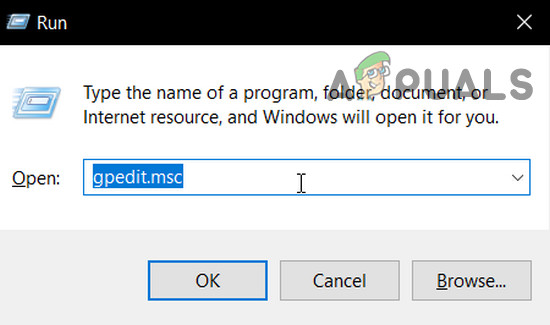- Press Windows key + R to open up a Run dialog box. Next, type ‘gpedit.msc‘ inside the text box and press Enter to open up the Local Group Policy Editor.