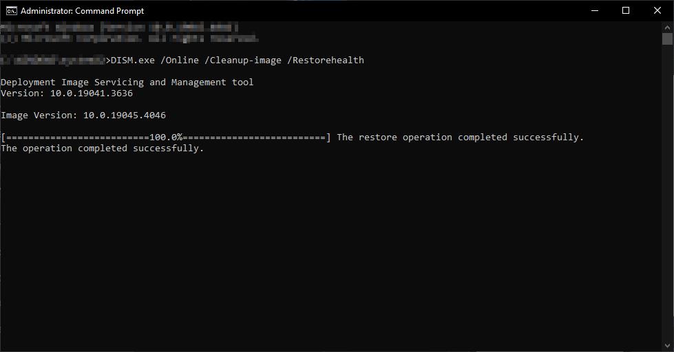 - First, execute the following command: DISM.exe /Online /Cleanup-image /Restorehealth. This ensures that the system file check can operate effectively.