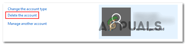 - Once you’re inside the Manage Accounts window, click on the DefaultUser0 account to select it, then click on Delete the account from the next menu.