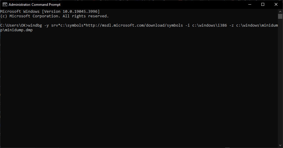 - If you chose to save the file in the C:\windows\minidump\minidump.dmp folder, you can use the following command as an example: