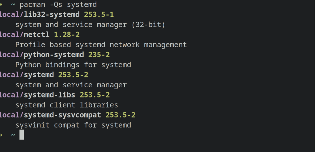 pacman -Qs systemd
